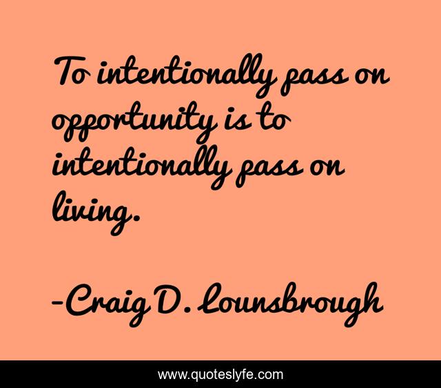 "Craig D. Lounsbrough Quotes." Quoteslyfe.com, 2025. Sun. 07 Dec. 2025. <https://www.quoteslyfe.com/quote/To-intentionally-pass-on-opportunity-is-to-45814>.