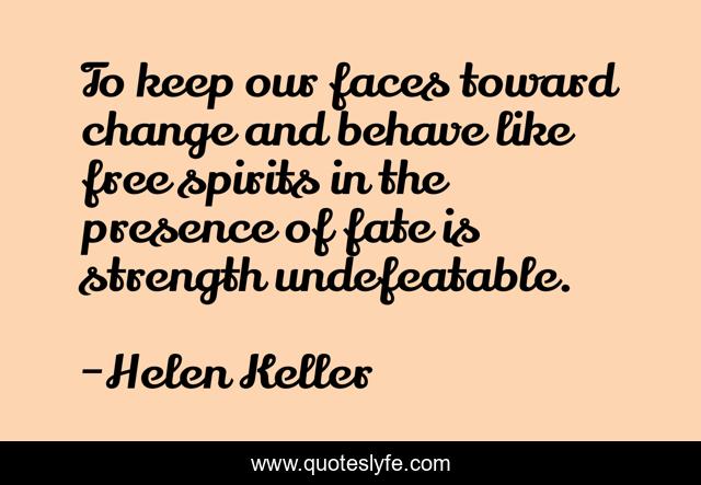 This page presents the quote "To keep our faces toward change and behave like free spirits in the presence of fate is strength undefeatable.". Author of this quote is Helen Keller. This quote is about positive, confidence,.