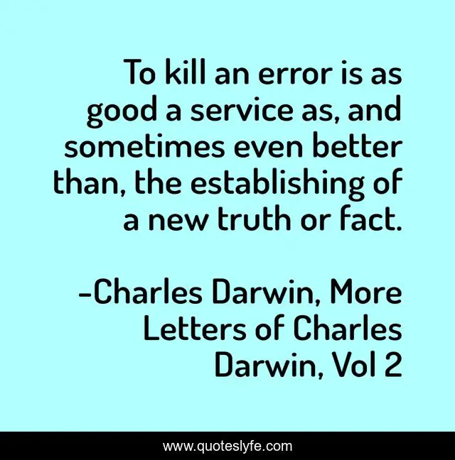 "Charles Darwin, More Letters of Charles Darwin, Vol 2 Quotes." Quoteslyfe.com, 2025. Fri. 05 Dec. 2025. <https://www.quoteslyfe.com/quote/To-kill-an-error-is-as-good-189810>.
