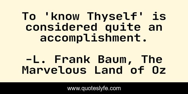 This page presents the quote "To 'know Thyself' is considered quite an accomplishment.". Author of this quote is L. Frank Baum, The Marvelous Land of Oz. This quote is about self, knowledge,.