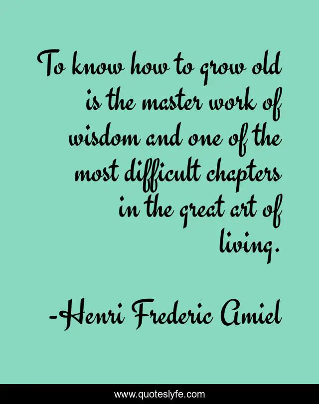 This page presents the quote "To know how to grow old is the master work of wisdom and one of the most difficult chapters in the great art of living.". Author of this quote is Henri Frederic Amiel. .