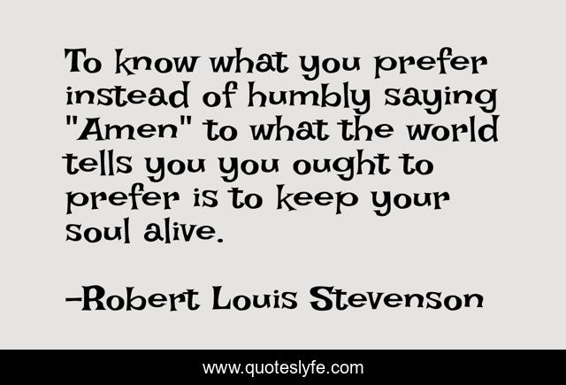 This page presents the quote "To know what you prefer instead of humbly saying "Amen" to what the world tells you you ought to prefer is to keep your soul alive.". Author of this quote is Robert Louis Stevenson. .
