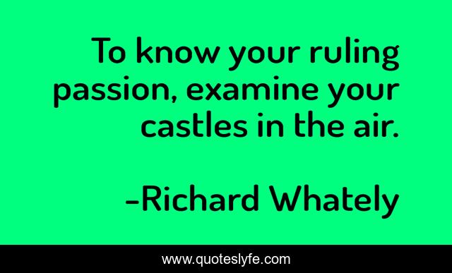 This page presents the quote "To know your ruling passion, examine your castles in the air.". Author of this quote is Richard Whately. This quote is about passion, castles-in-the-air,.