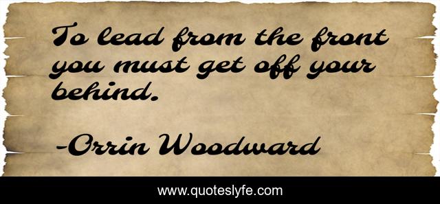 This page presents the quote "To lead from the front you must get off your behind.". Author of this quote is Orrin Woodward. This quote is about action, leadership, procrastination,.