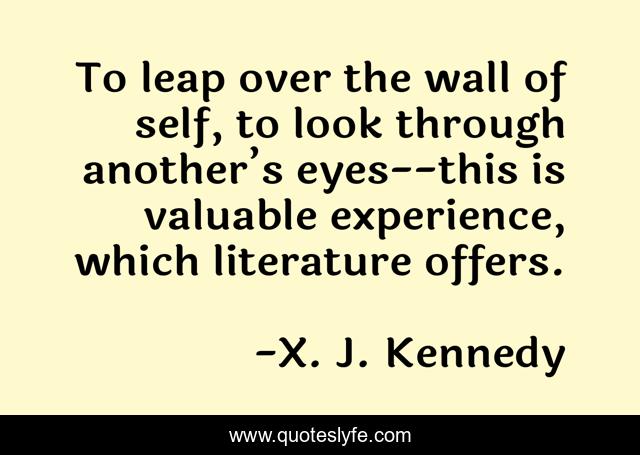 This page presents the quote "To leap over the wall of self, to look through another’s eyes--this is valuable experience, which literature offers.". Author of this quote is X. J. Kennedy. This quote is about books, reading, literature,.