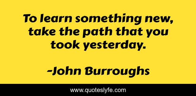 This page presents the quote "To learn something new, take the path that you took yesterday.". Author of this quote is John Burroughs. This quote is about education, learning,.