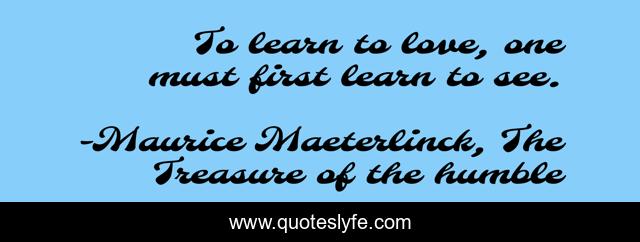"Maurice Maeterlinck, The Treasure of the humble Quotes." Quoteslyfe.com, 2025. Sat. 06 Dec. 2025. <https://www.quoteslyfe.com/quote/To-learn-to-love-one-must-first-225388>.