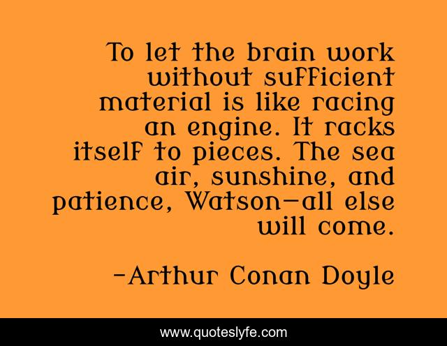 To let the brain work without sufficient material is like racing an engine. It racks itself to pieces. The sea air, sunshine, and patience, Watson—all else will come.