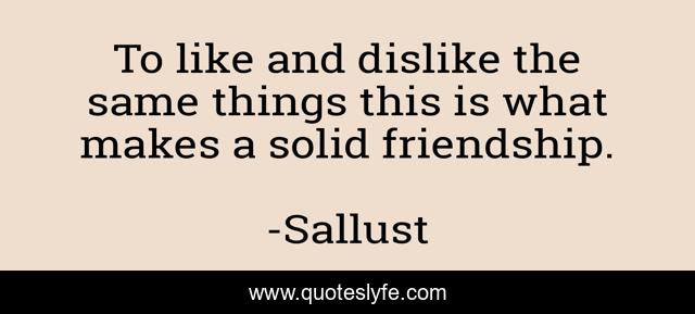 This page presents the quote "To like and dislike the same things this is what makes a solid friendship.". Author of this quote is Sallust. .