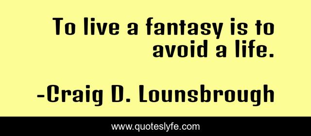 This page presents the quote "To live a fantasy is to avoid a life.". Author of this quote is Craig D. Lounsbrough. This quote is about life, genuine, avoid, reality, fantasy, avoidance, authentic, fabrication,.