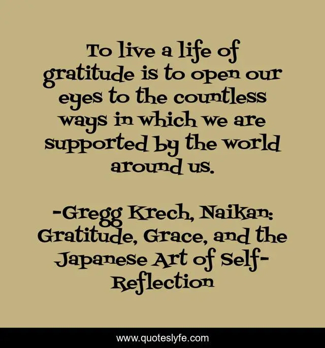 "Gregg Krech, Naikan: Gratitude, Grace, and the Japanese Art of Self-Reflection Quotes." Quoteslyfe.com, 2025. Mon. 08 Dec. 2025. <https://www.quoteslyfe.com/quote/To-live-a-life-of-gratitude-is-180443>.