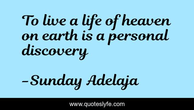 This page presents the quote "To live a life of heaven on earth is a personal discovery". Author of this quote is Sunday Adelaja. This quote is about life, heaven, personal, live, earth, discovery,.