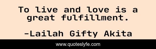 This page presents the quote "To live and love is a great fulfillment.". Author of this quote is Lailah Gifty Akita. This quote is about live-your-life, love, fullfillment, fulfilling-your-potential, live-life-so-well, love-story, life-philosophy, affection,.