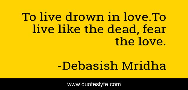 This page presents the quote "To live drown in love.To live like the dead, fear the love.". Author of this quote is Debasish Mridha. This quote is about life, love, knowledge, inspirational, intelligence, philosophy, wisdom, quotes, affection,.