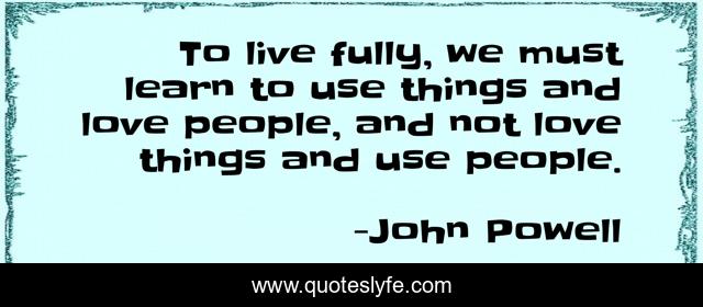 This page presents the quote "To live fully, we must learn to use things and love people, and not love things and use people.". Author of this quote is John Powell. This quote is about friends, consumerism, love, affection,.