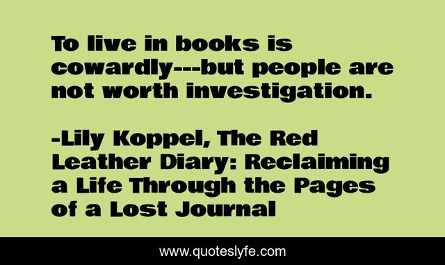 "Lily Koppel, The Red Leather Diary: Reclaiming a Life Through the Pages of a Lost Journal Quotes." Quoteslyfe.com, 2025. Mon. 08 Dec. 2025. <https://www.quoteslyfe.com/quote/To-live-in-books-is-cowardly-but-254924>.