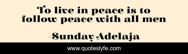 This page presents the quote "To live in peace is to follow peace with all men". Author of this quote is Sunday Adelaja. This quote is about follow, all, men, live, peace,.