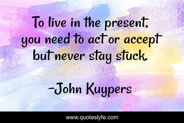 This page presents the quote "To live in the present, you need to act or accept but never stay stuck.". Author of this quote is John Kuypers. This quote is about living-in-the-present, present,.