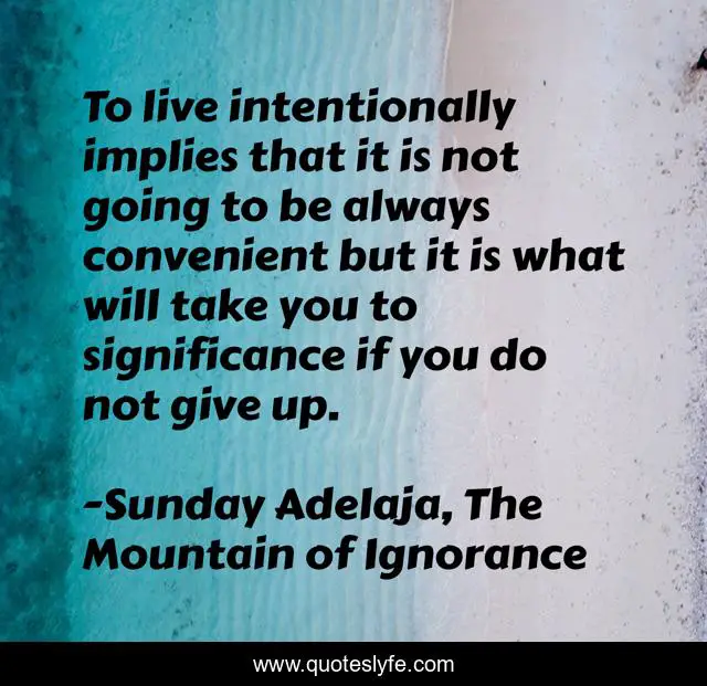 This page presents the quote "To live intentionally implies that it is not going to be always convenient but it is what will take you to significance if you do not give up.". Author of this quote is Sunday Adelaja, The Mountain of Ignorance. This quote is about life, darkness, power, people, god, danger, ignorance, convenience, destruction,.