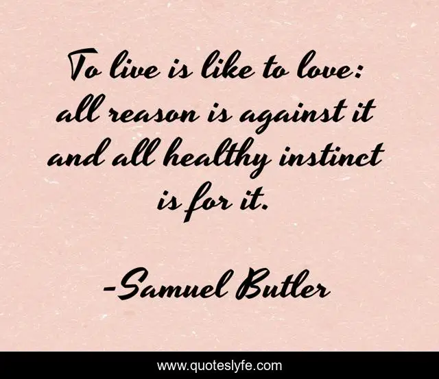 This page presents the quote "To live is like to love: all reason is against it and all healthy instinct is for it.". Author of this quote is Samuel Butler. .