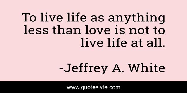 This page presents the quote "To live life as anything less than love is not to live life at all.". Author of this quote is Jeffrey A. White. This quote is about life-philosophy, life-and-living, love, affection,.
