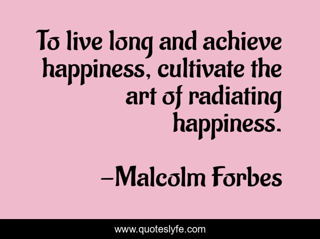 This page presents the quote "To live long and achieve happiness, cultivate the art of radiating happiness.". Author of this quote is Malcolm Forbes. This quote is about happiness, inspiration,.