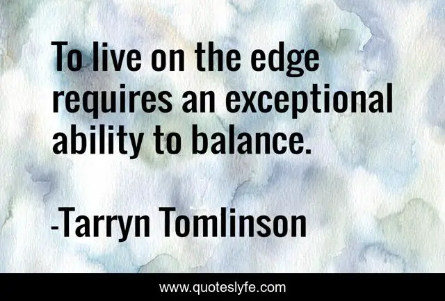 This page presents the quote "To live on the edge requires an exceptional ability to balance.". Author of this quote is Tarryn Tomlinson. This quote is about life, balance, life-and-sayings,.