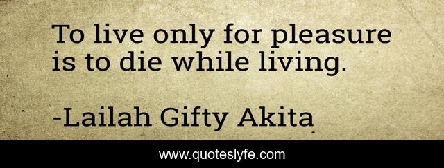 This page presents the quote "To live only for pleasure is to die while living.". Author of this quote is Lailah Gifty Akita. This quote is about living, life, die, advice, prostitution, wisdom, adultery, sin, inspiration,.