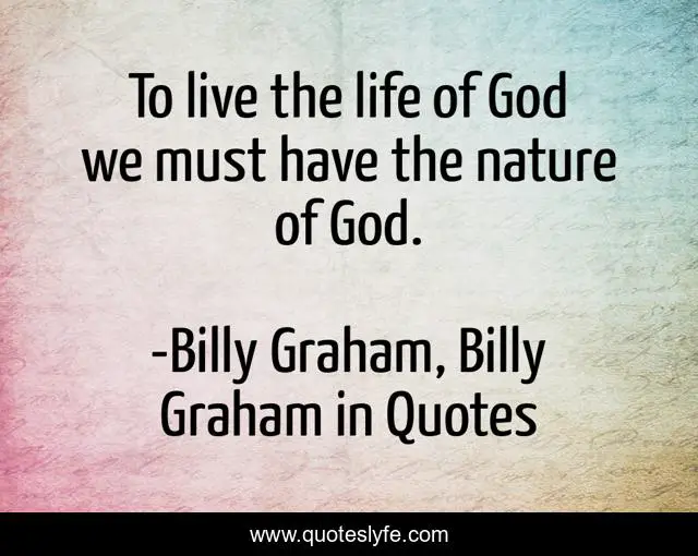 This page presents the quote "To live the life of God we must have the nature of God.". Author of this quote is Billy Graham, Billy Graham in Quotes. This quote is about god, billy-graham,.