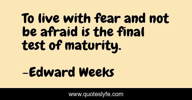 This page presents the quote "To live with fear and not be afraid is the final test of maturity.". Author of this quote is Edward Weeks. This quote is about maturity, fear, courage,.