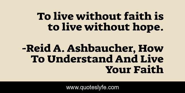 This page presents the quote "To live without faith is to live without hope.". Author of this quote is Reid A. Ashbaucher, How To Understand And Live Your Faith. This quote is about faith, reid-ashbaucher, christian-living, christianity,.