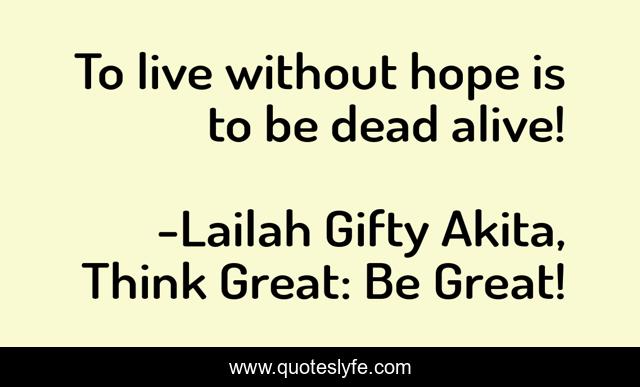 "Lailah Gifty Akita, Think Great: Be Great! Quotes." Quoteslyfe.com, 2025. Sun. 07 Dec. 2025. <https://www.quoteslyfe.com/quote/To-live-without-hope-is-to-be-91765>.