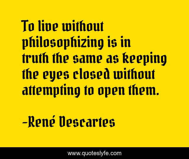 This page presents the quote "To live without philosophizing is in truth the same as keeping the eyes closed without attempting to open them.". Author of this quote is René Descartes. This quote is about enthusiasm, inspirational,.