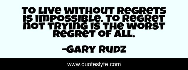 This page presents the quote "To live without regrets is impossible. To regret not trying is the worst regret of all.". Author of this quote is Gary Rudz. This quote is about life, failing, regrets, trying,.