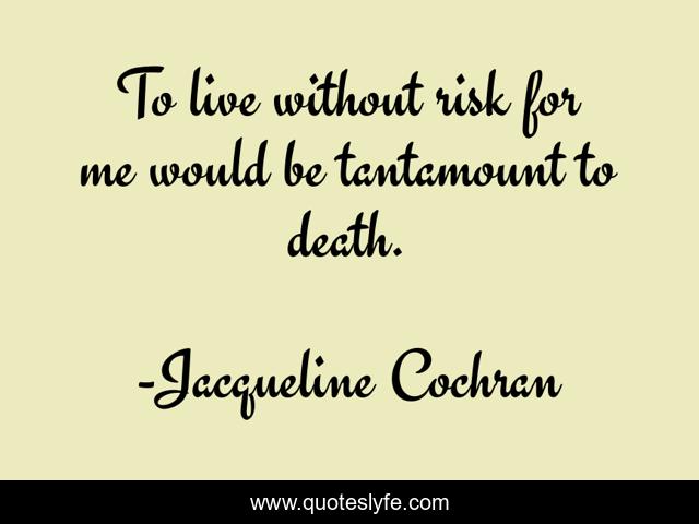 This page presents the quote "To live without risk for me would be tantamount to death.". Author of this quote is Jacqueline Cochran. .