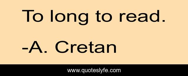 This page presents the quote "To long to read.". Author of this quote is A. Cretan. This quote is about longing, reading, things-like-that,.