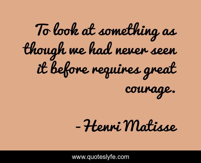 This page presents the quote "To look at something as though we had never seen it before requires great courage.". Author of this quote is Henri Matisse. This quote is about courage, original-thoughts,.