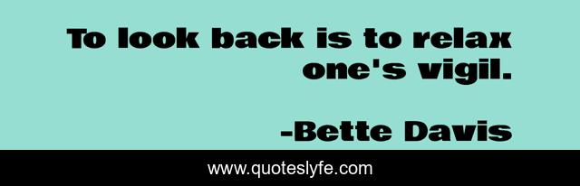This page presents the quote "To look back is to relax one's vigil.". Author of this quote is Bette Davis. .