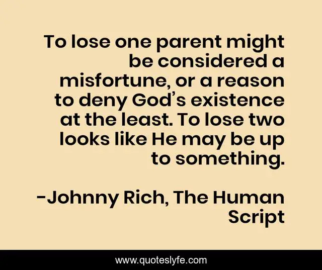"Johnny Rich, The Human Script Quotes." Quoteslyfe.com, 2025. Mon. 08 Dec. 2025. <https://www.quoteslyfe.com/quote/To-lose-one-parent-might-be-considered-243436>.