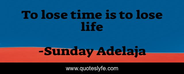 This page presents the quote "To lose time is to lose life". Author of this quote is Sunday Adelaja. This quote is about loss, life, blessing, finance, money, work, job, joblessness, purpose,.
