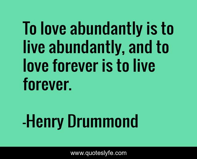 This page presents the quote "To love abundantly is to live abundantly, and to love forever is to live forever.". Author of this quote is Henry Drummond. This quote is about eternity, life, love, affection,.