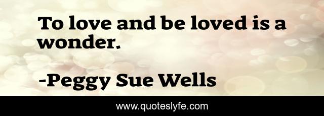 This page presents the quote "To love and be loved is a wonder.". Author of this quote is Peggy Sue Wells. This quote is about romance, love, affection, wonder,.