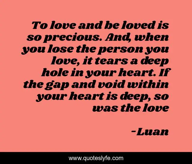 This page presents the quote "To love and be loved is so precious. And, when you lose the person you love, it tears a deep hole in your heart. If the gap and void within your heart is deep, so was the love". Author of this quote is Luan. This quote is about love, affection, hurt,.