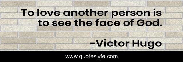 This page presents the quote "To love another person is to see the face of God.". Author of this quote is Victor Hugo. This quote is about god, see, face,.