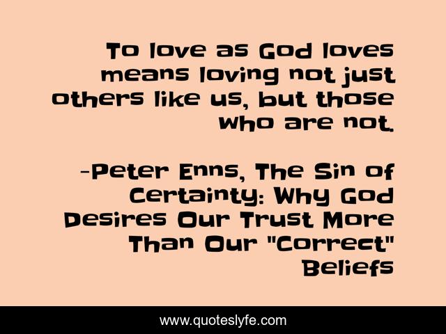 "Peter Enns, The Sin of Certainty: Why God Desires Our Trust More Than Our "Correct" Beliefs Quotes." Quoteslyfe.com, 2025. Sat. 06 Dec. 2025. <https://www.quoteslyfe.com/quote/To-love-as-God-loves-means-loving-62015>.