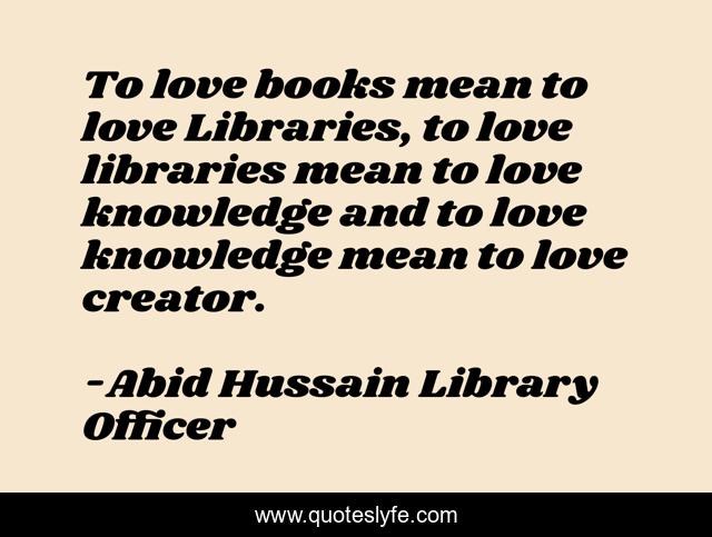 This page presents the quote "To love books mean to love Libraries, to love libraries mean to love knowledge and to love knowledge mean to love creator.". Author of this quote is Abid Hussain Library Officer. .