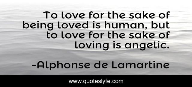 This page presents the quote "To love for the sake of being loved is human, but to love for the sake of loving is angelic.". Author of this quote is Alphonse de Lamartine. This quote is about angelic, love, human, affection,.