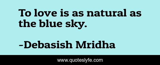 This page presents the quote "To love is as natural as the blue sky.". Author of this quote is Debasish Mridha. This quote is about life, love, knowledge, inspirational, intelligence, philosophy, wisdom, quotes, affection,.