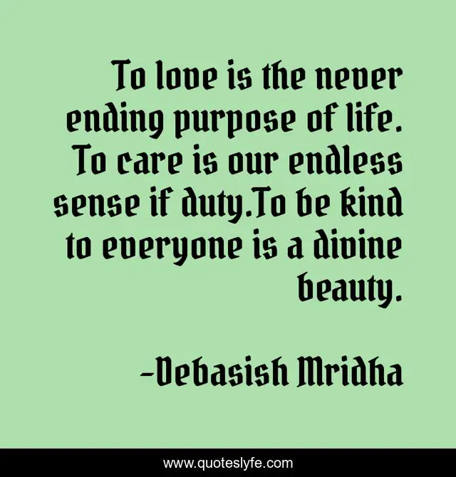 To love is the never ending purpose of life. To care is our endless sense if duty.To be kind to everyone is a divine beauty.