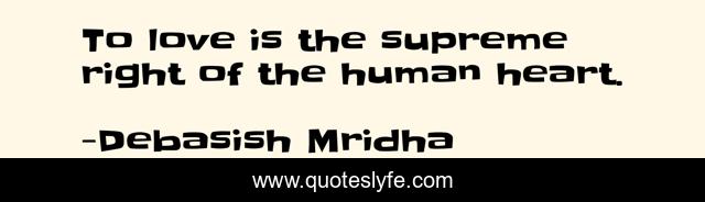 This page presents the quote "To love is the supreme right of the human heart.". Author of this quote is Debasish Mridha. This quote is about to-love-is-the-supreme-right, love, philosophy, debasish-mridha, valentine, quotes, inspirational, enthusiasm, human-heart,.